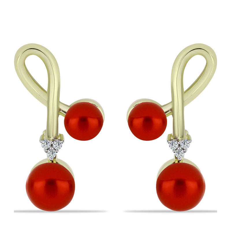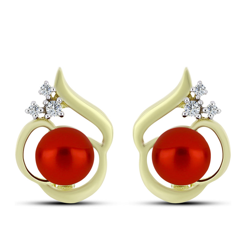 Pozlacené Stříbrné Náušnice s Červená sladkovodní Perlou a Bílým Topazem