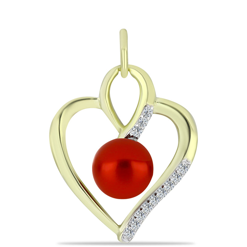 Pozlacený Stříbrný Přívěsek s Červená sladkovodní Perlou