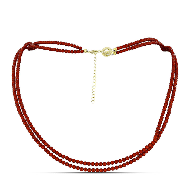 Pozlacený Stříbrný Náhrdelník s Červená sladkovodní Perlou