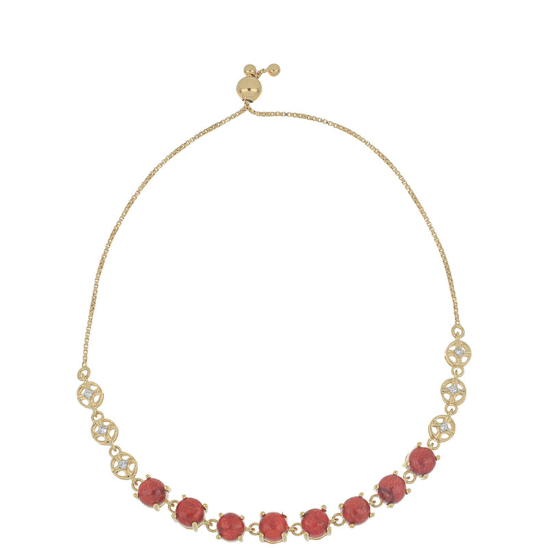 Pozlacený Stříbrný Náramek s Červeným Houbovým Korálem a Bílým Topazem