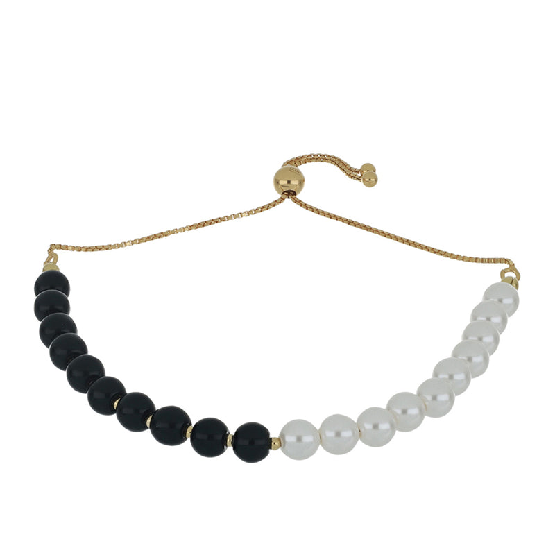 Pozlacený Stříbrný Náramek s Obsidiánem a Bílou Sladkovodní Perlou