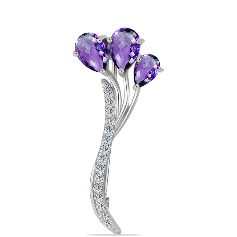 Stříbrný Brož s Marockým Ametystem a Bílým Topazem