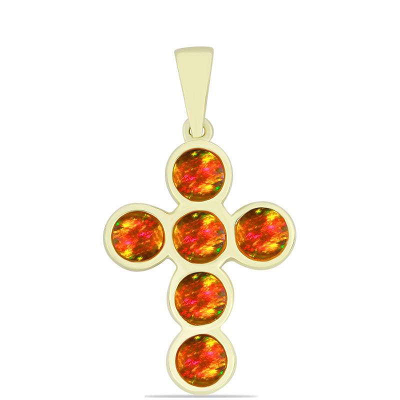 Kříž Pozlacený Stříbrný Přívěsek s Americkým Ohnivým Opálem