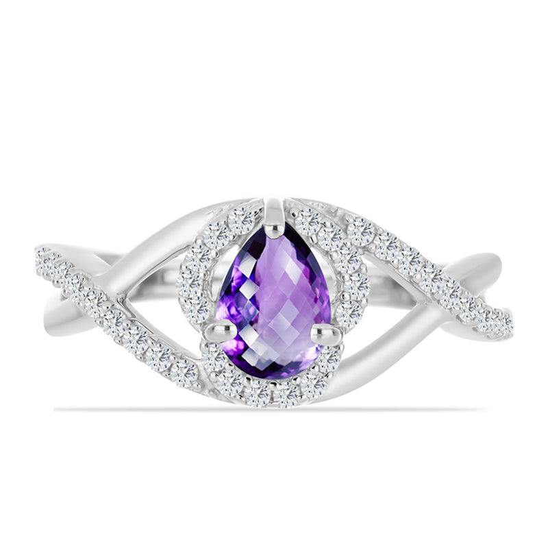 Stříbrný Prsten s Marockým Ametystem a Bílým Topazem