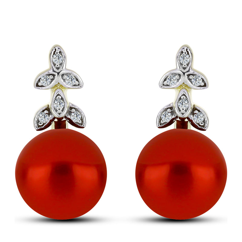 Pozlacené Stříbrné Náušnice s Červená sladkovodní Perlou a Bílým Topazem