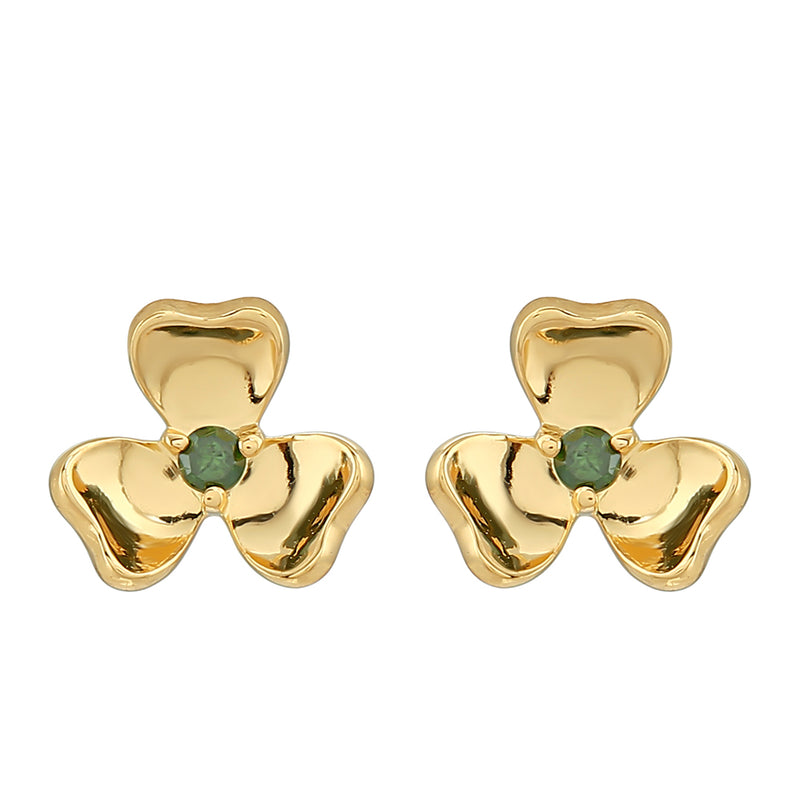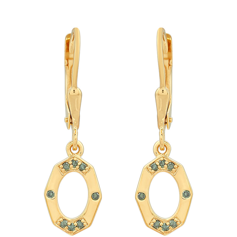 Pozlacené Stříbrné Náušnice se Zeleným Diamantem