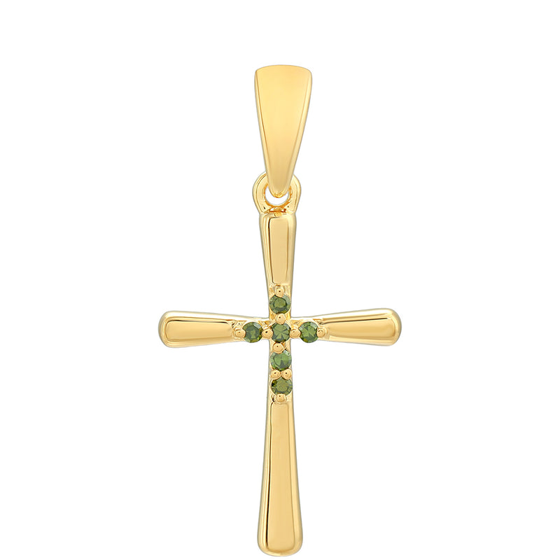 Kříž Pozlacený Stříbrný Přívěsek se Zeleným Diamantem