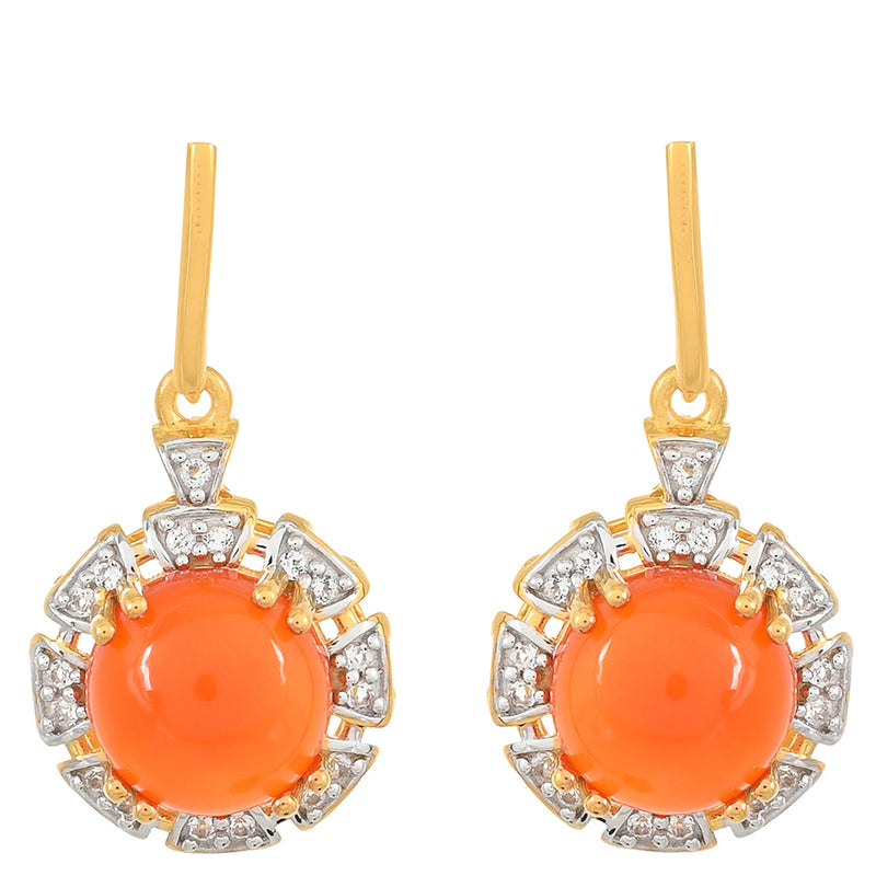 Pozlacené Stříbrné Náušnice s Karneolem a Bílým Topazem