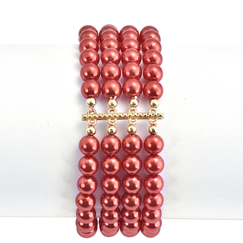 Pozlacený Stříbrný Náramek s Červená sladkovodní Perlou