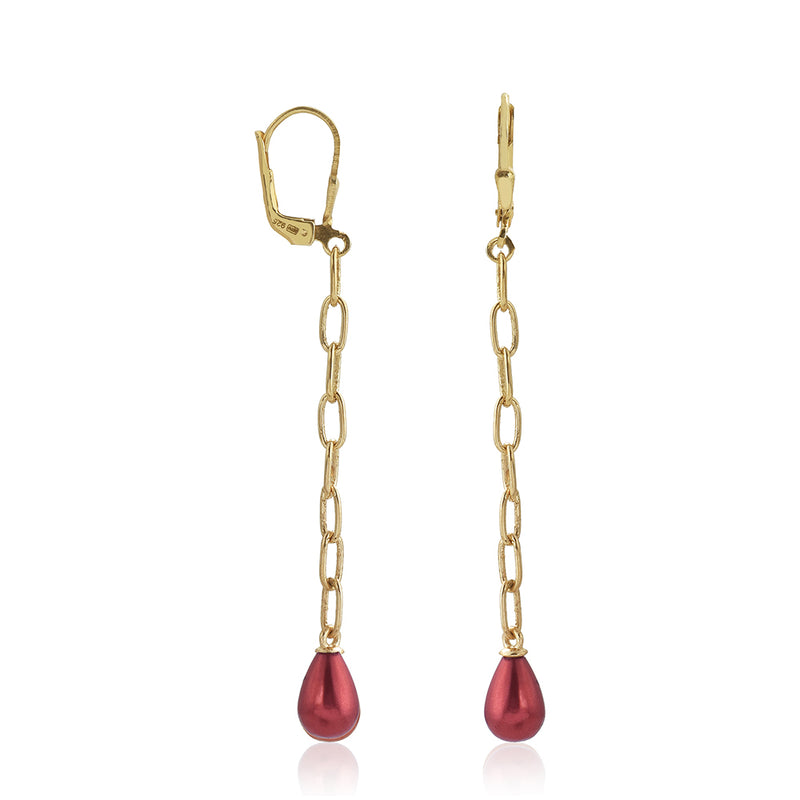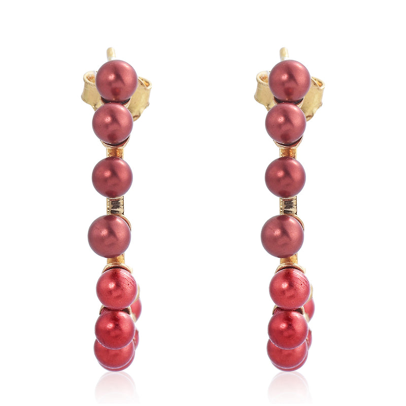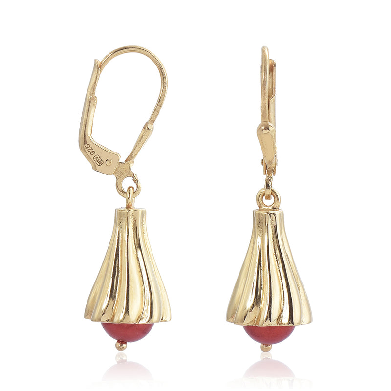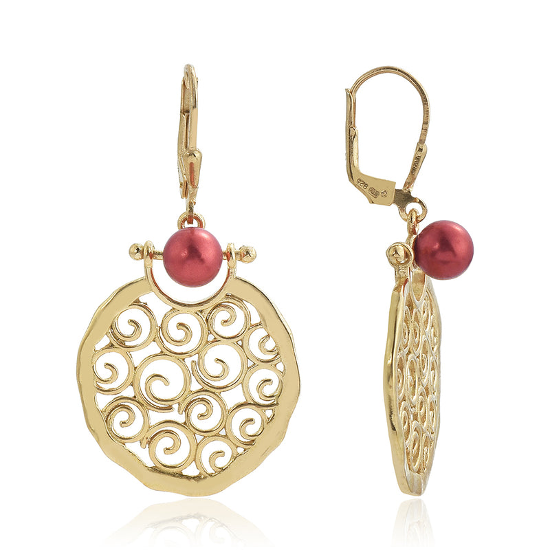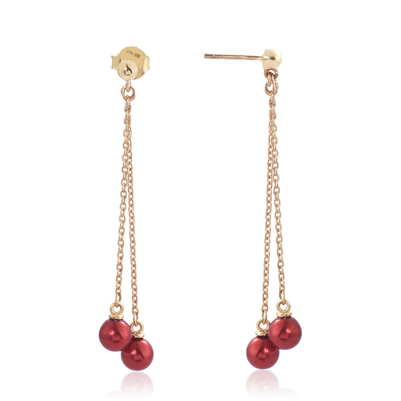 Pozlacené Stříbrné Náušnice s Červená sladkovodní Perlou