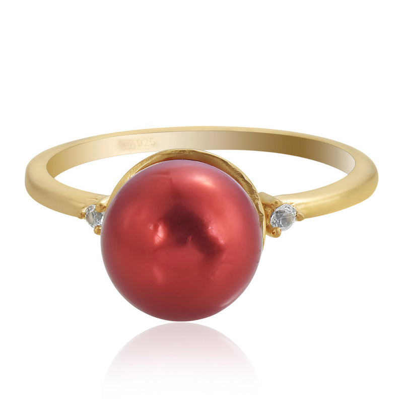 Pozlacený Stříbrný Prsten s Červená sladkovodní Perlou a Bílým Topazem