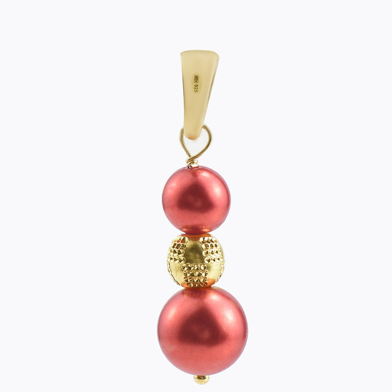 Pozlacený Stříbrný Přívěsek s Červená sladkovodní Perlou