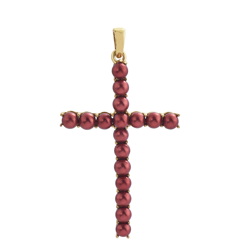 Kříž Pozlacený Stříbrný Přívěsek s Červená sladkovodní Perlou