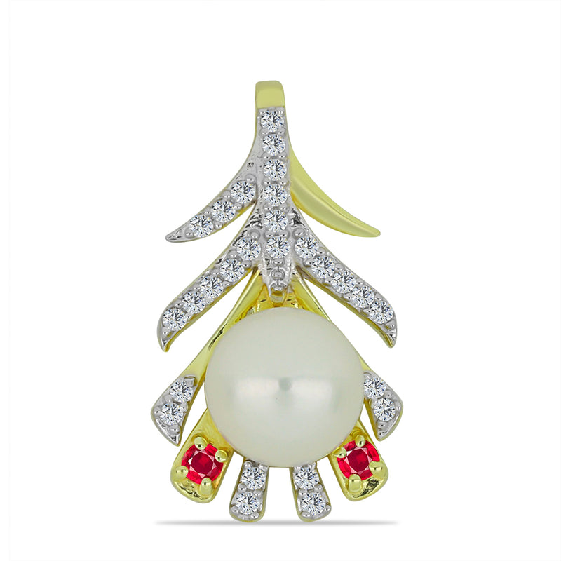 Pozlacený Stříbrný Přívěsek s Bílou Sladkovodní Perlou a Madagaskarským Rubínem