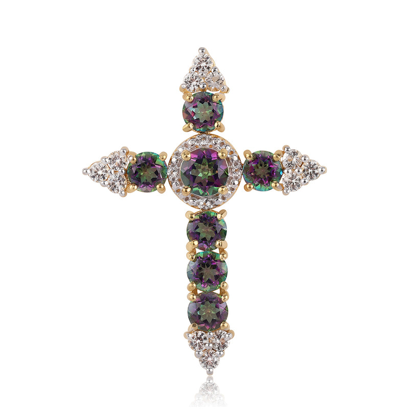 Kříž Pozlacený Stříbrný Přívěsek s Mystickým Topazem a Bílým Topazem