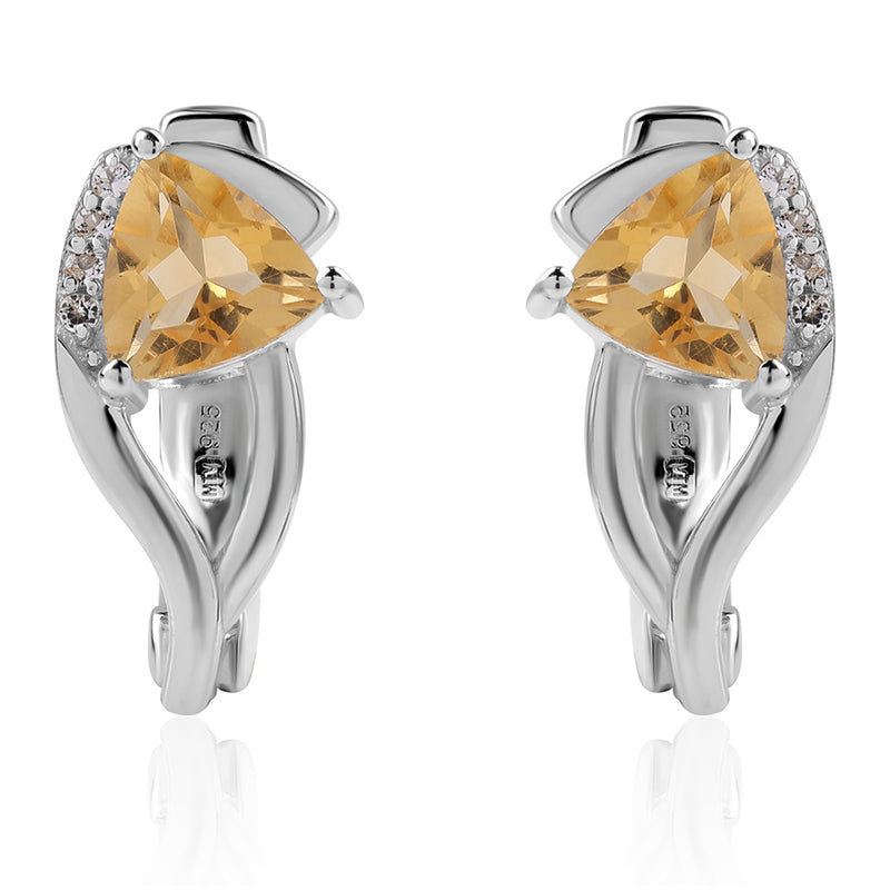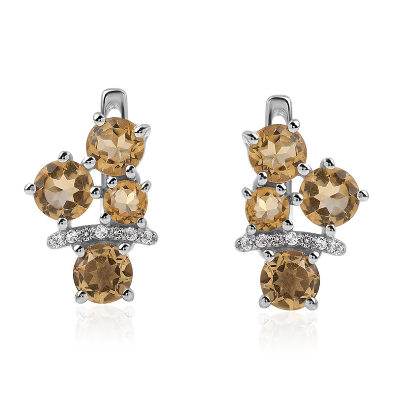 Stříbrné Náušnice s Brazilským Citrínem tř.AA a Bílým Topazem