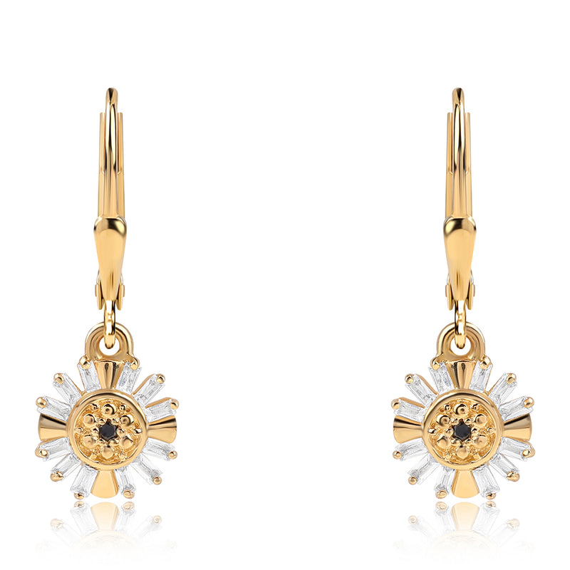 Pozlacené Stříbrné Náušnice s Černým Diamantem a Bílým Topazem