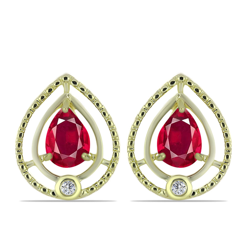 Pozlacené Stříbrné Náušnice s Madagaskarským Rubínem a Bílým Topazem