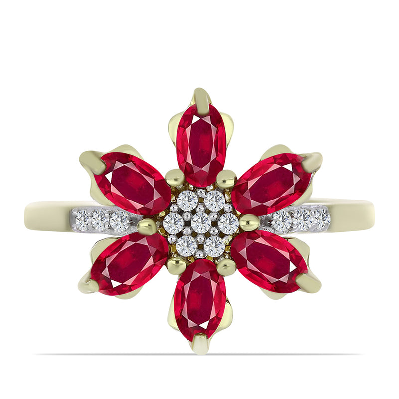 Pozlacený Stříbrný Prsten s Madagaskarským Rubínem a Bílým Topazem