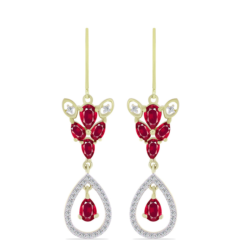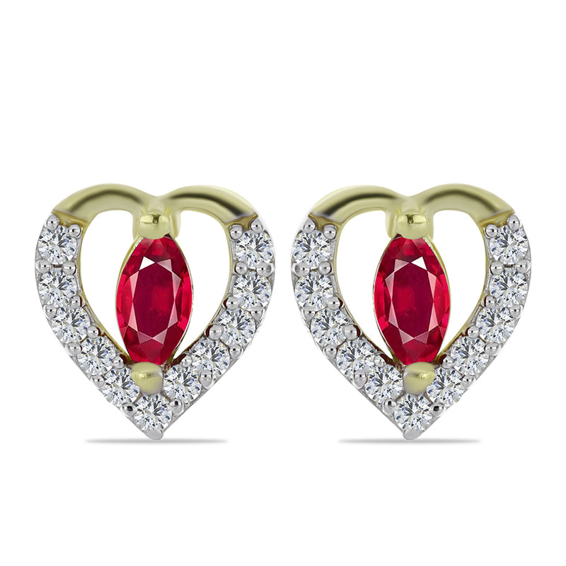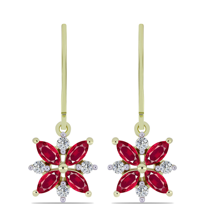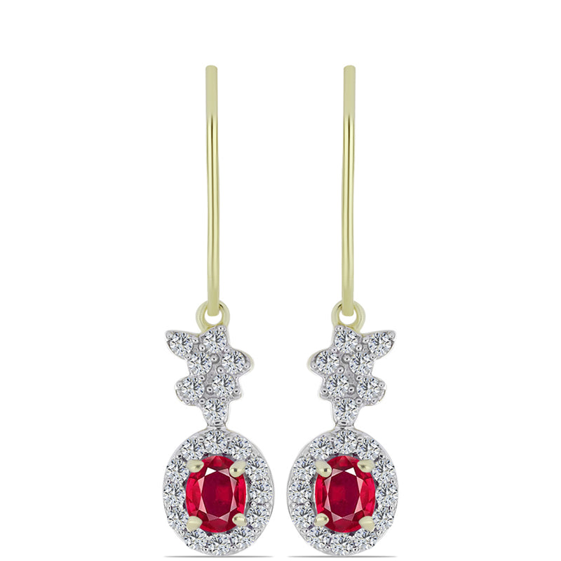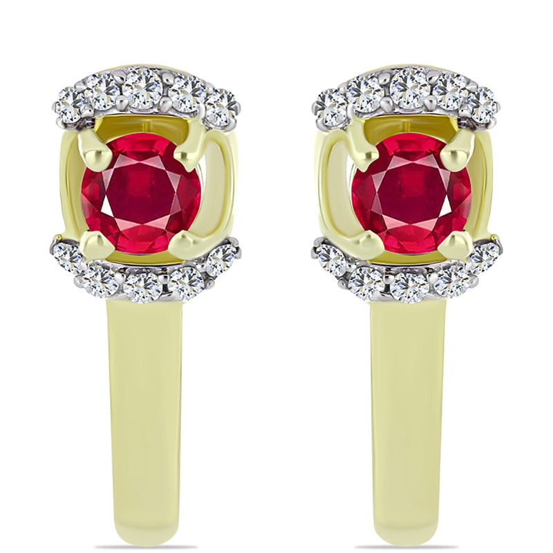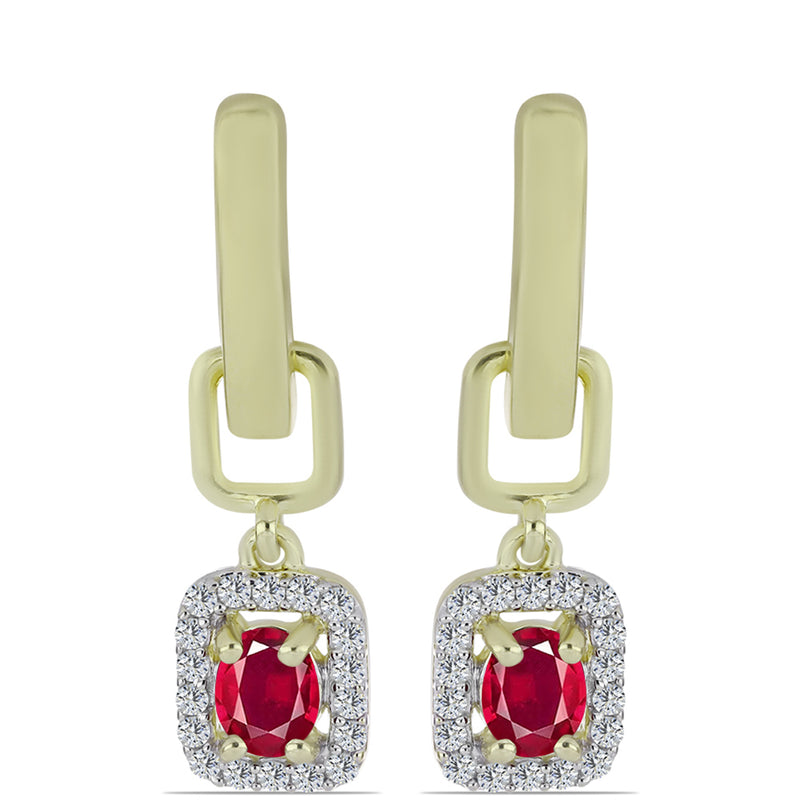 Pozlacené Stříbrné Náušnice s Madagaskarským Rubínem a Bílým Topazem