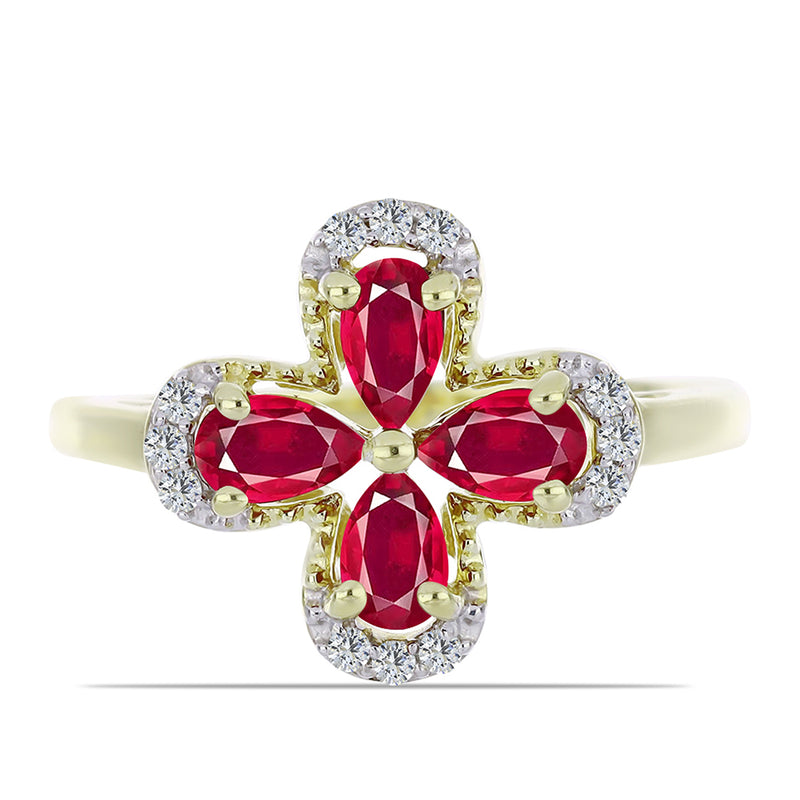Pozlacený Stříbrný Prsten s Madagaskarským Rubínem a Bílým Topazem