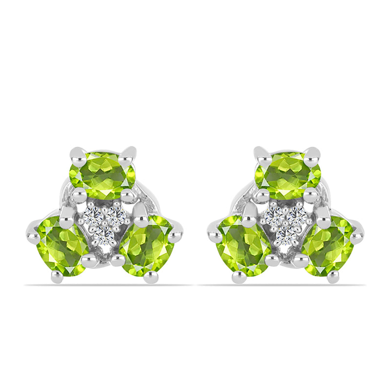 Stříbrné Náušnice s Čchang-pajským Peridotem a Bílým Topazem