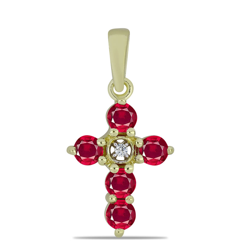 Kříž Pozlacený Stříbrný Přívěsek s Madagaskarským Rubínem a Bílým Topazem