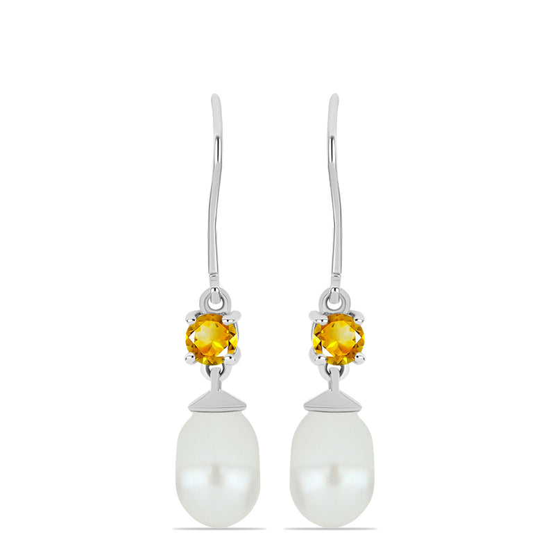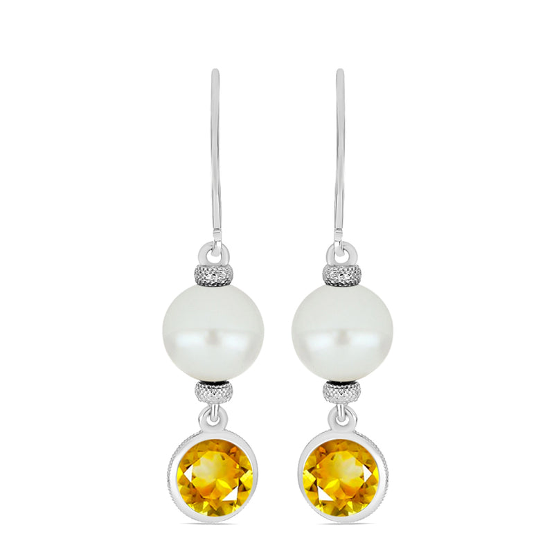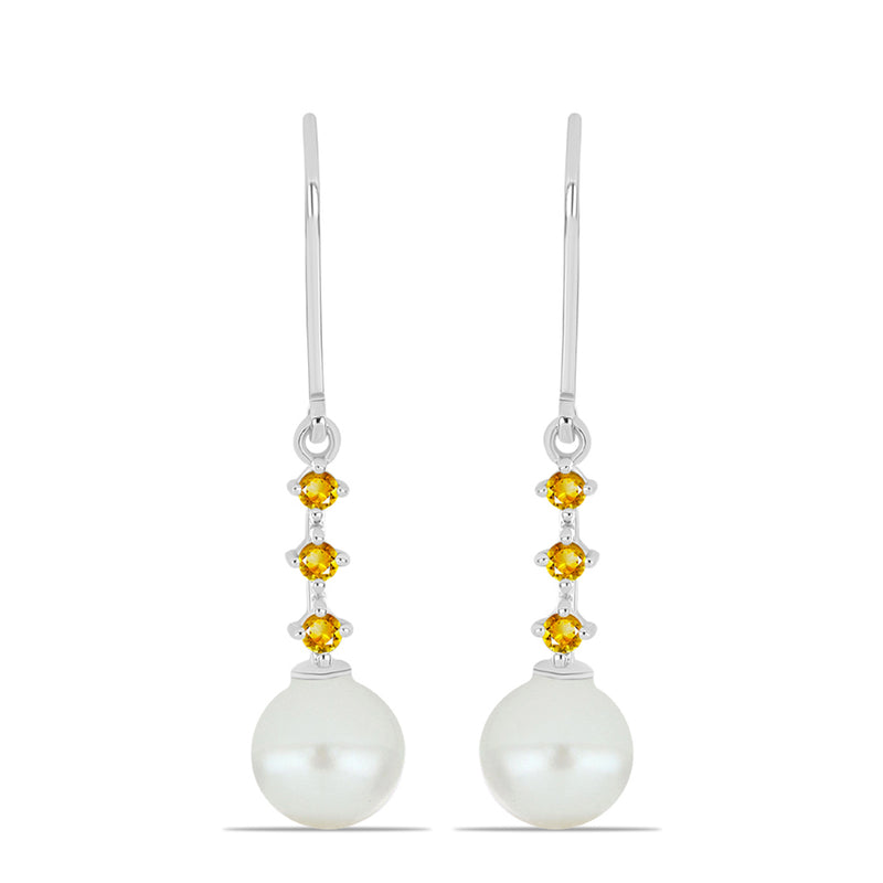 Stříbrné Náušnice s Uralským Citrínem a Bílou Sladkovodní Perlou