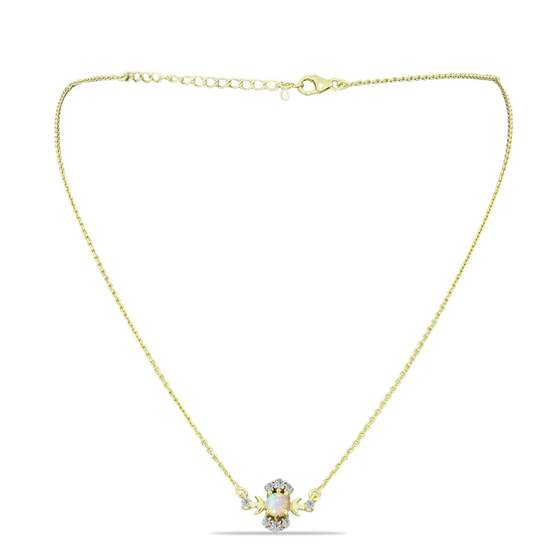 Pozlacený Stříbrný Náhrdelník s Etiopským Opálem z Lega Dembi a Bílým Topazem