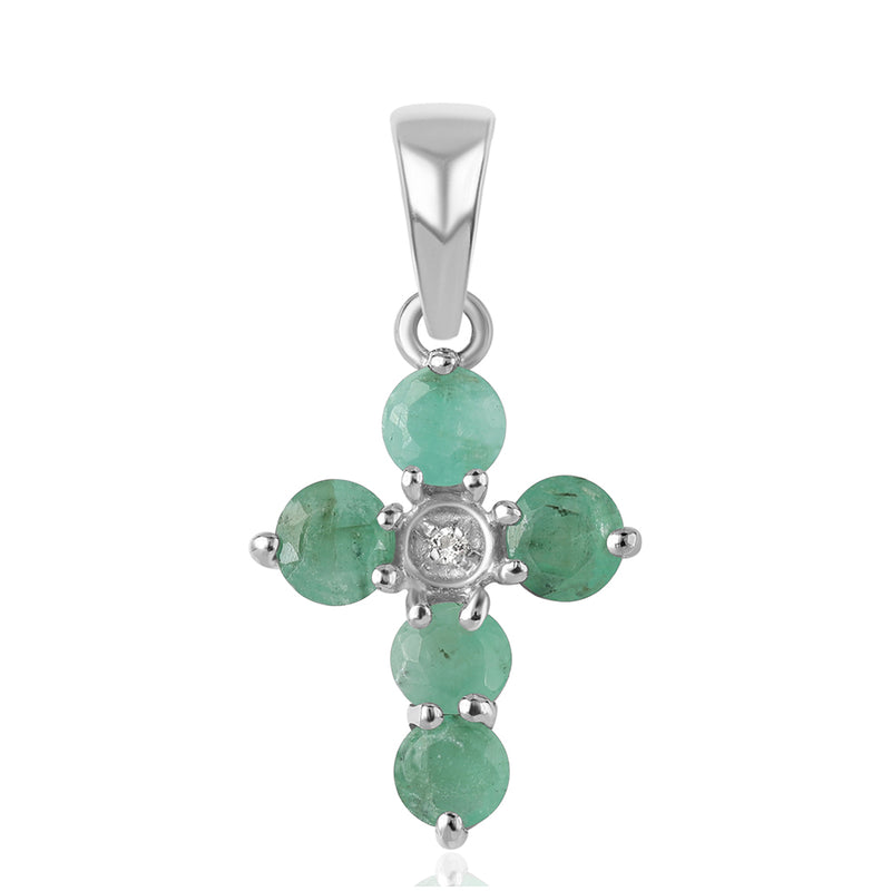 Kříž Stříbrný Přívěsek s Brazilským Smaragdem a Bílým Topazem