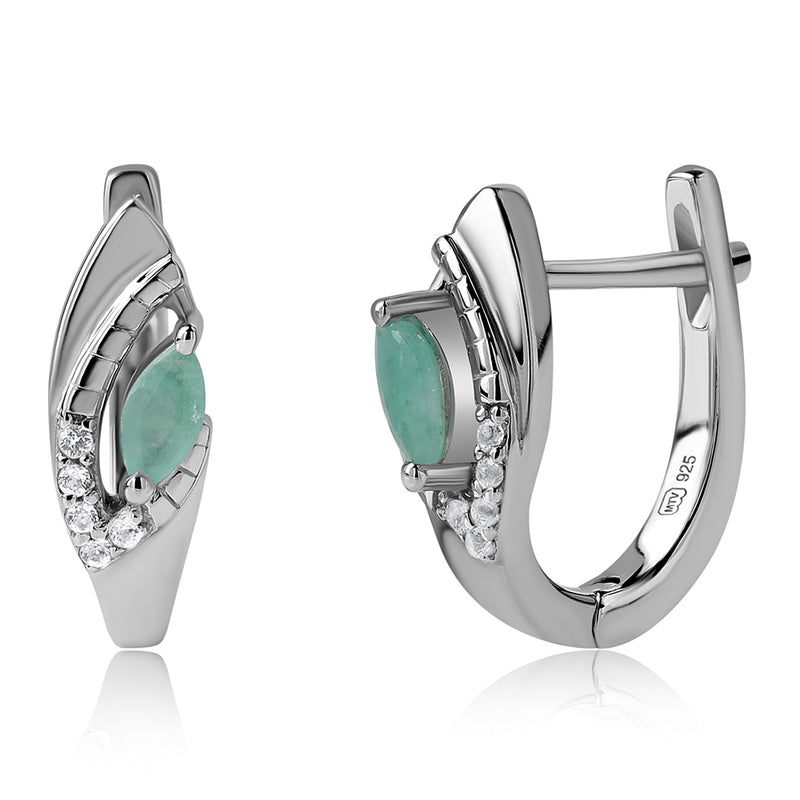 Stříbrné Náušnice s Brazilským Smaragdem a Bílým Topazem