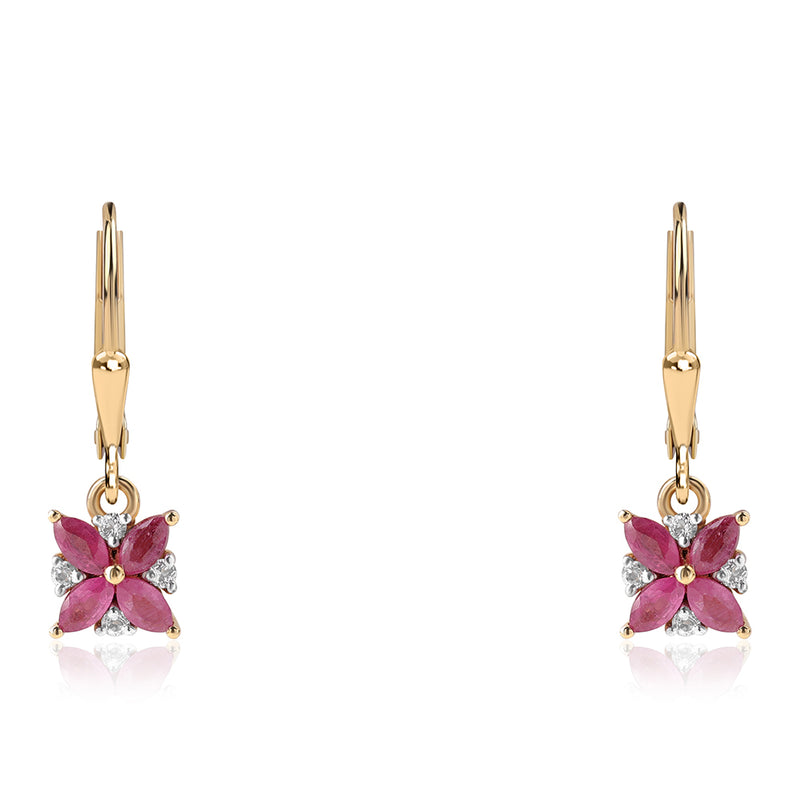 Pozlacené Stříbrné Náušnice s Mozambickým Rubínem a Bílým Topazem