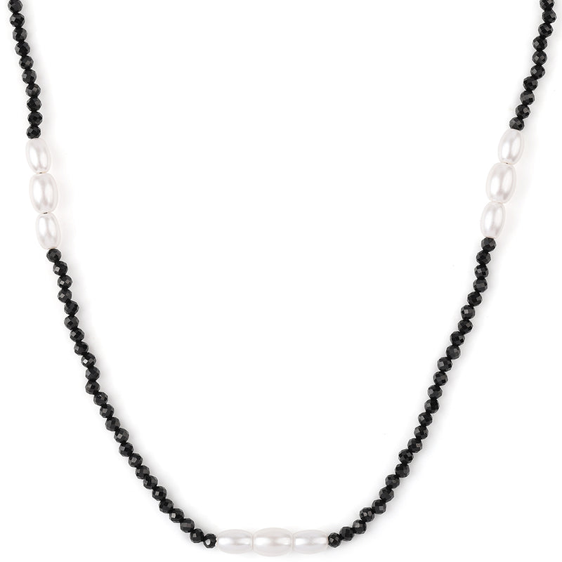 Pozlacený Stříbrný Náhrdelník s Černým spinelem a Bílou Sladkovodní Perlou