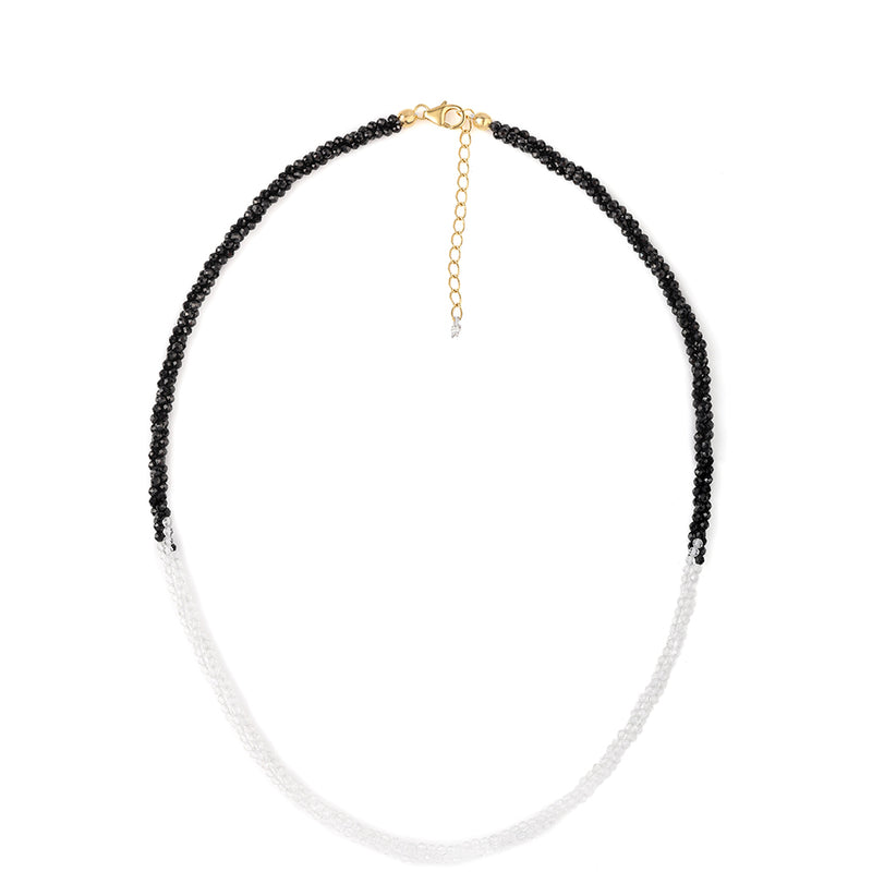 Pozlacený Stříbrný Náhrdelník s Černým spinelem a Bílým Topazem
