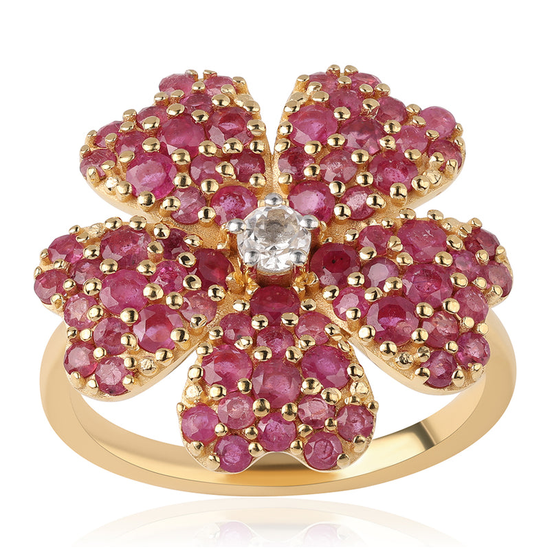 Pozlacený Stříbrný Prsten s Mozambickým Rubínem a Bílým Topazem