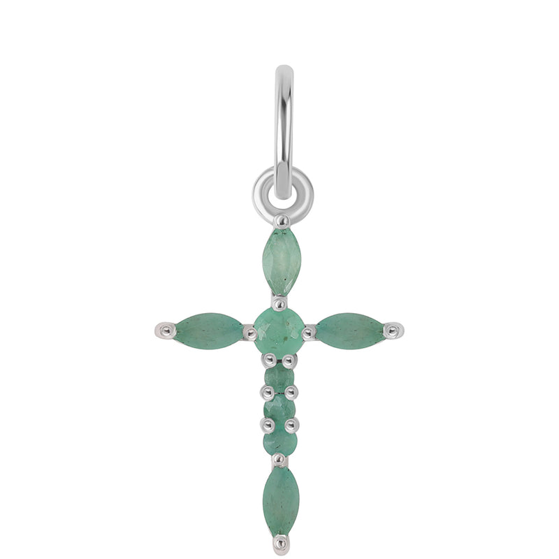 Kříž Stříbrný Přívěsek s Brazilským Smaragdem