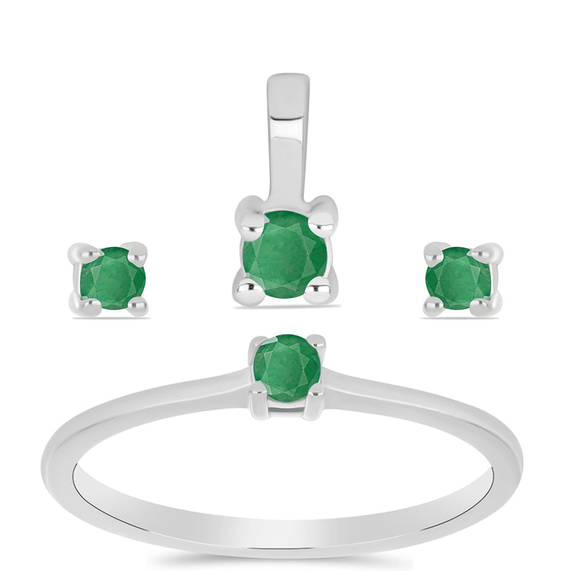 Stříbrná Sada s Brazilským Smaragdem ( Náušnice+Prsten+Přívěsek )