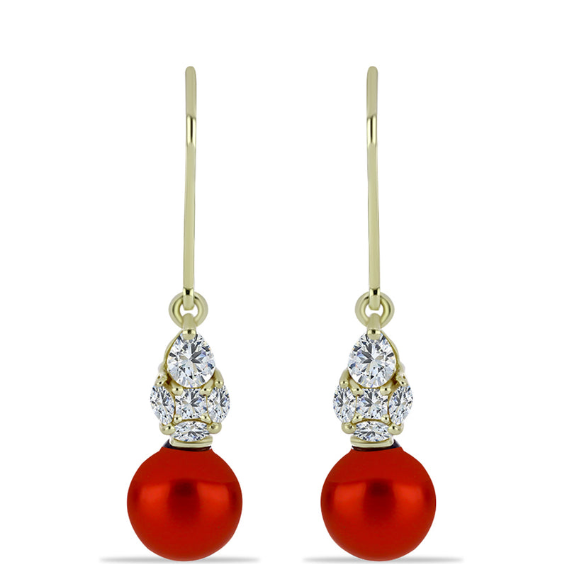Pozlacené Stříbrné Náušnice s Červená sladkovodní Perlou a Bílým Topazem