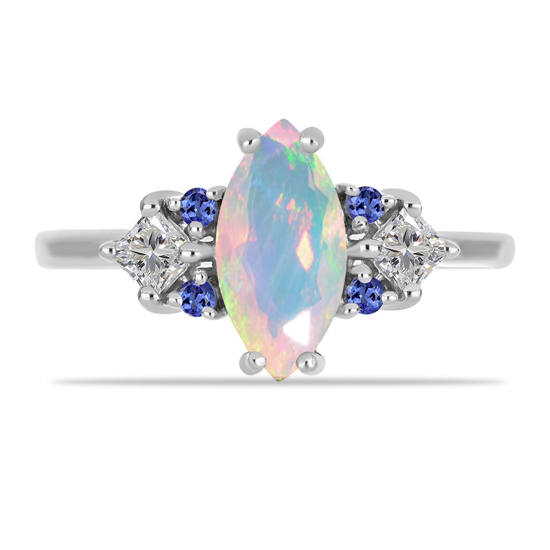 Stříbrný Prsten s Tanzanitem a Etiopským Opálem z Lega Dembi