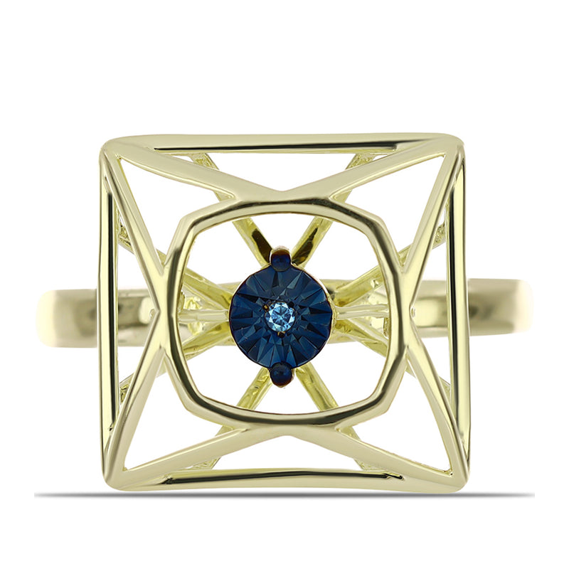Pozlacený Stříbrný Prsten s Modrým tančícím diamantem