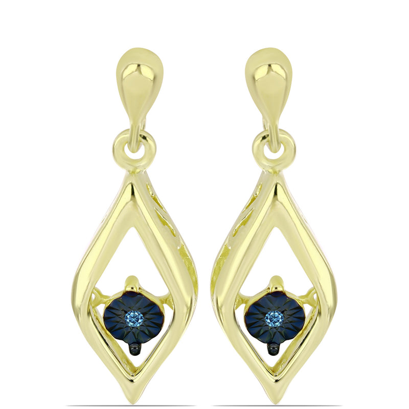 Pozlacené Stříbrné Náušnice s Modrým tančícím diamantem