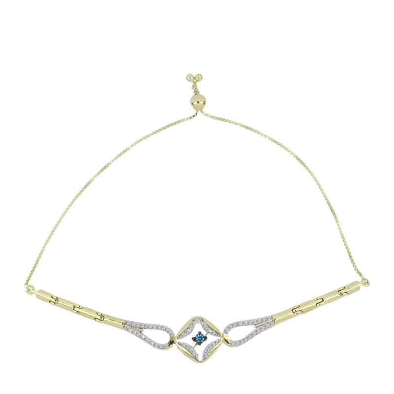 Pozlacený Stříbrný Náramek s Modrým tančícím diamantem a Bílým Topazem