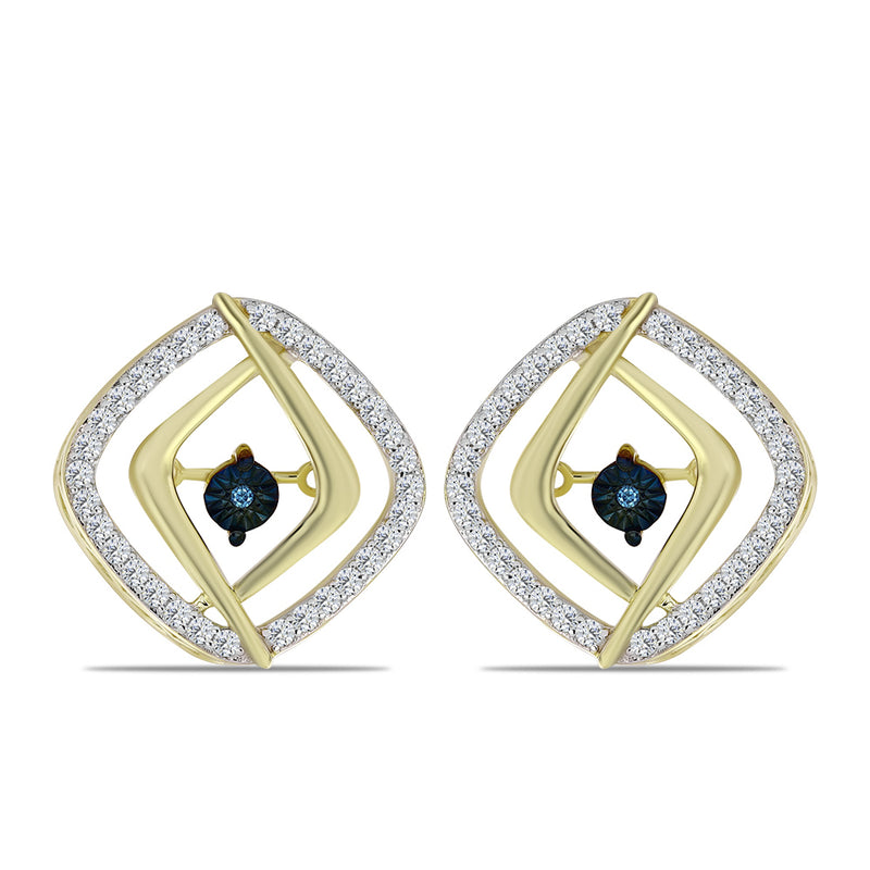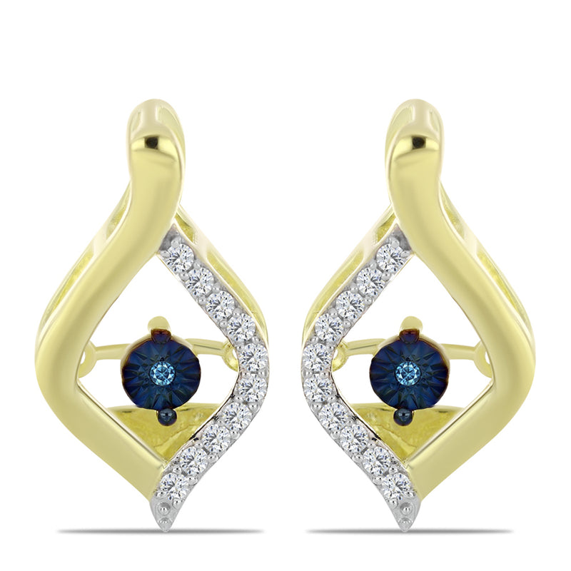 Pozlacené Stříbrné Náušnice s Modrým tančícím diamantem a Bílým Topazem
