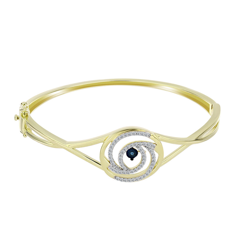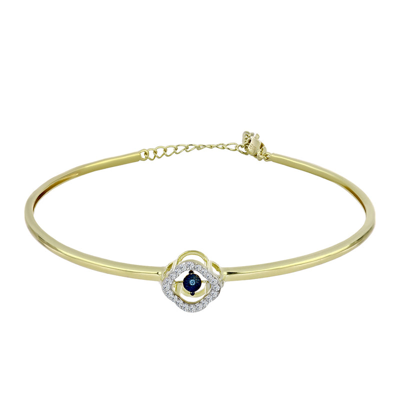 Pozlacený Stříbrný Náramek s Modrým tančícím diamantem a Bílým Topazem