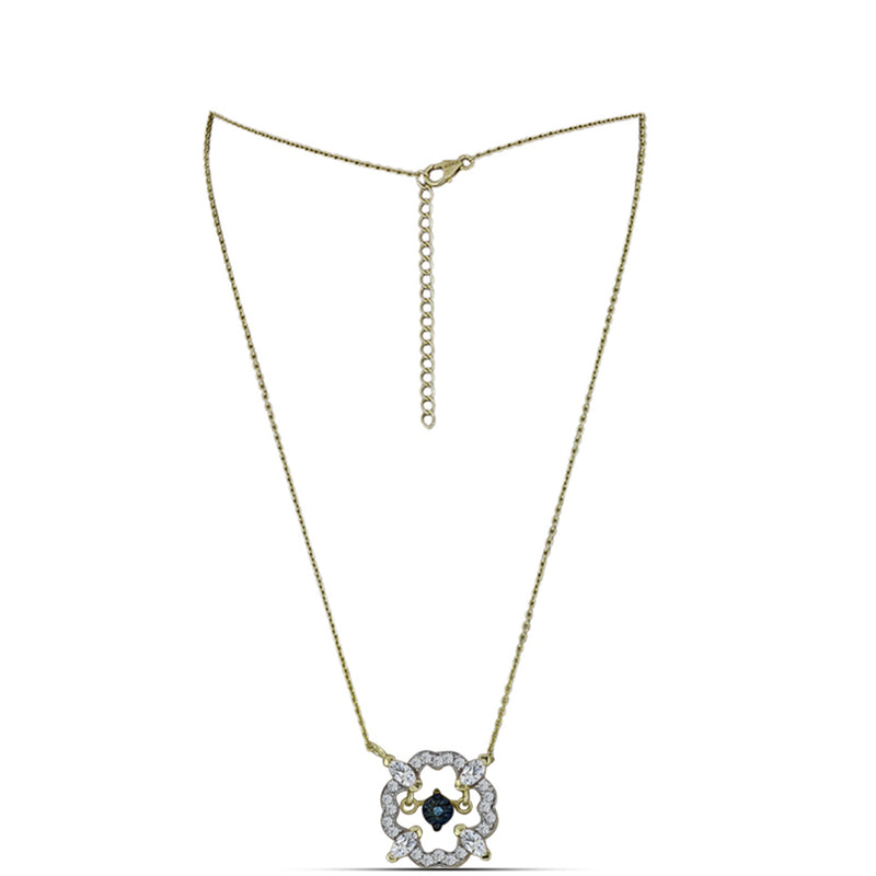 Pozlacený Stříbrný Náhrdelník s Modrým tančícím diamantem a Bílým Topazem