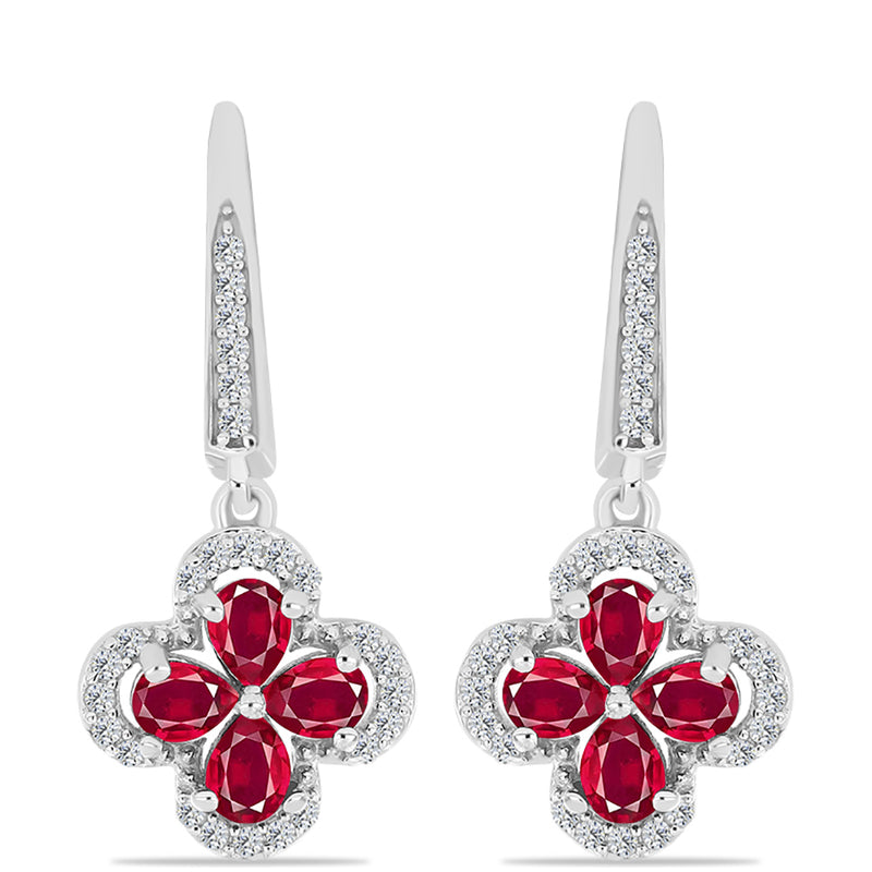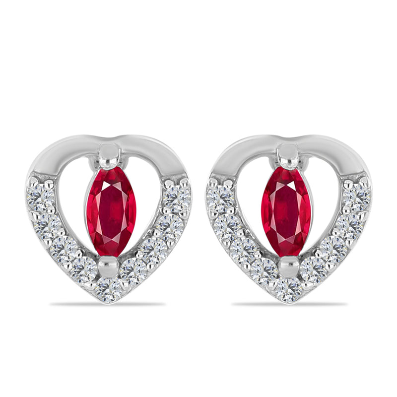 Stříbrné Náušnice s Madagaskarským Rubínem a Bílým Topazem