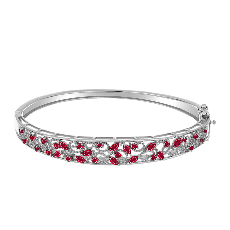 Stříbrný Náramek s Madagaskarským Rubínem a Bílým Topazem