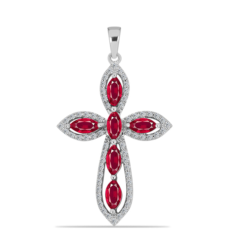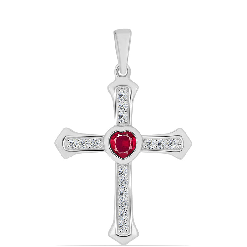 Kříž Stříbrný Přívěsek s Madagaskarským Rubínem a Bílým Topazem