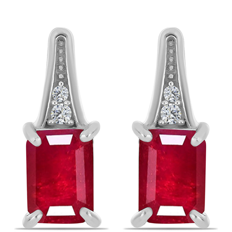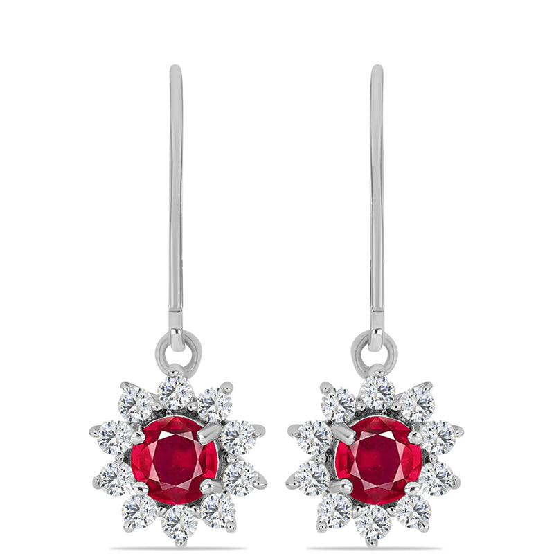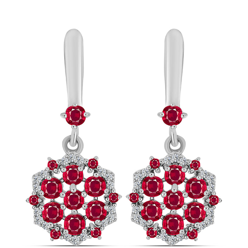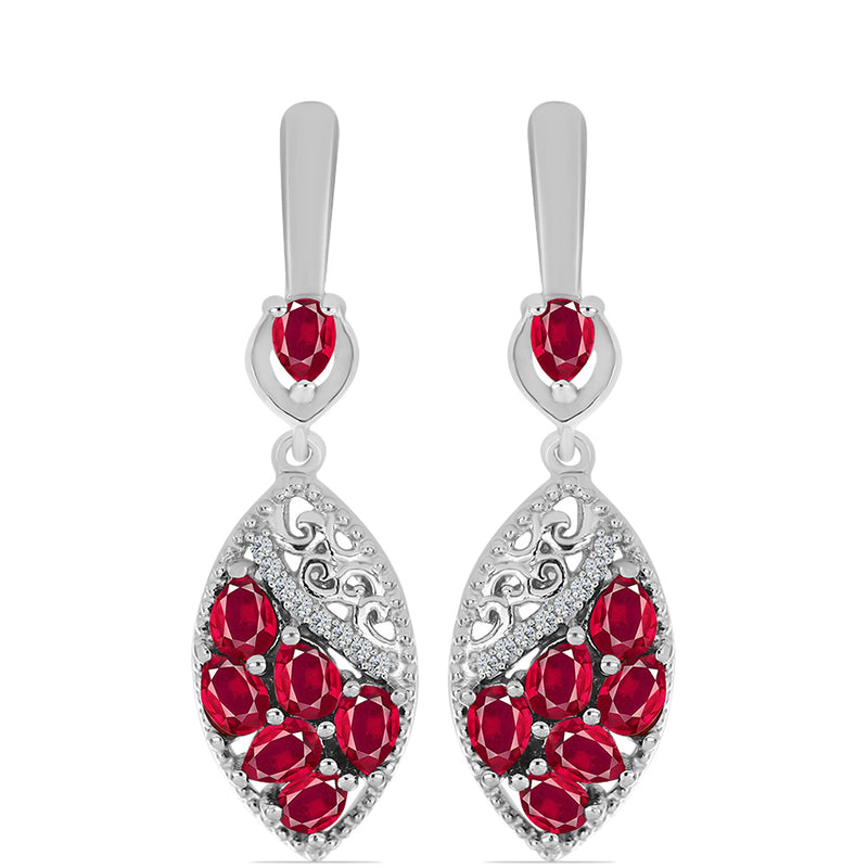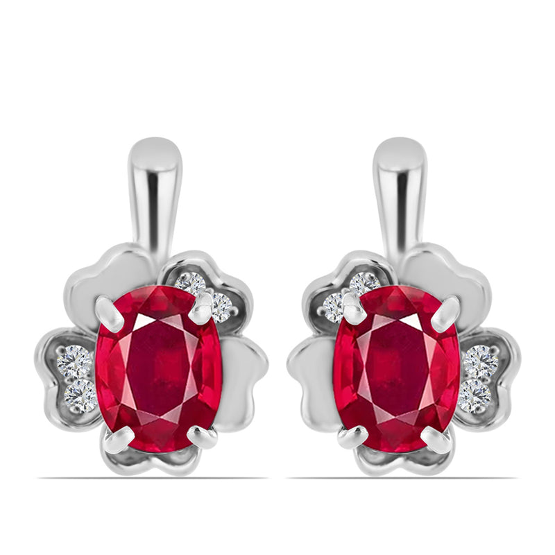 Stříbrné Náušnice s Madagaskarským Rubínem a Bílým Topazem
