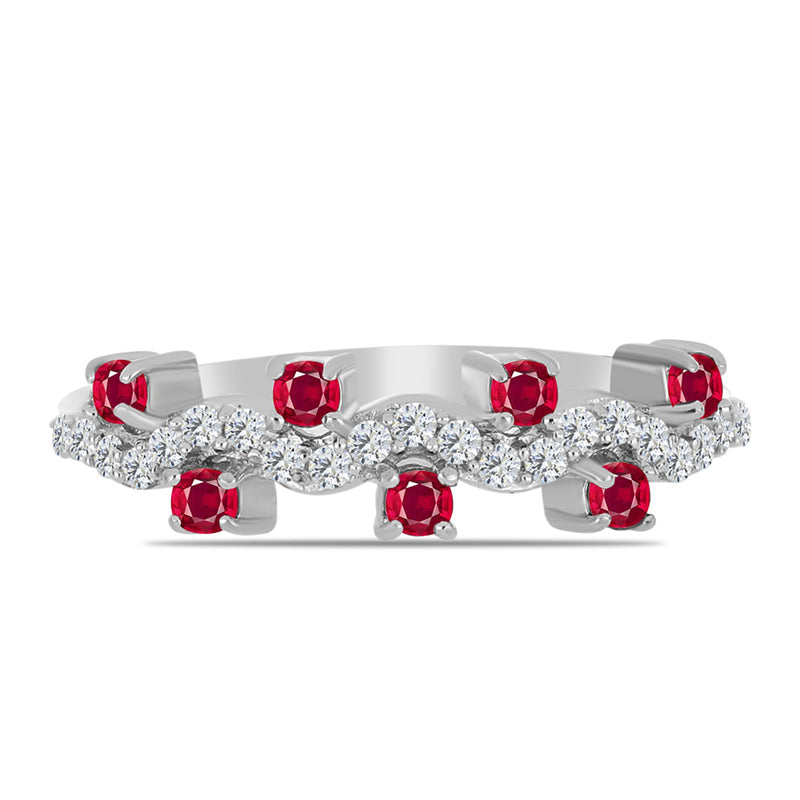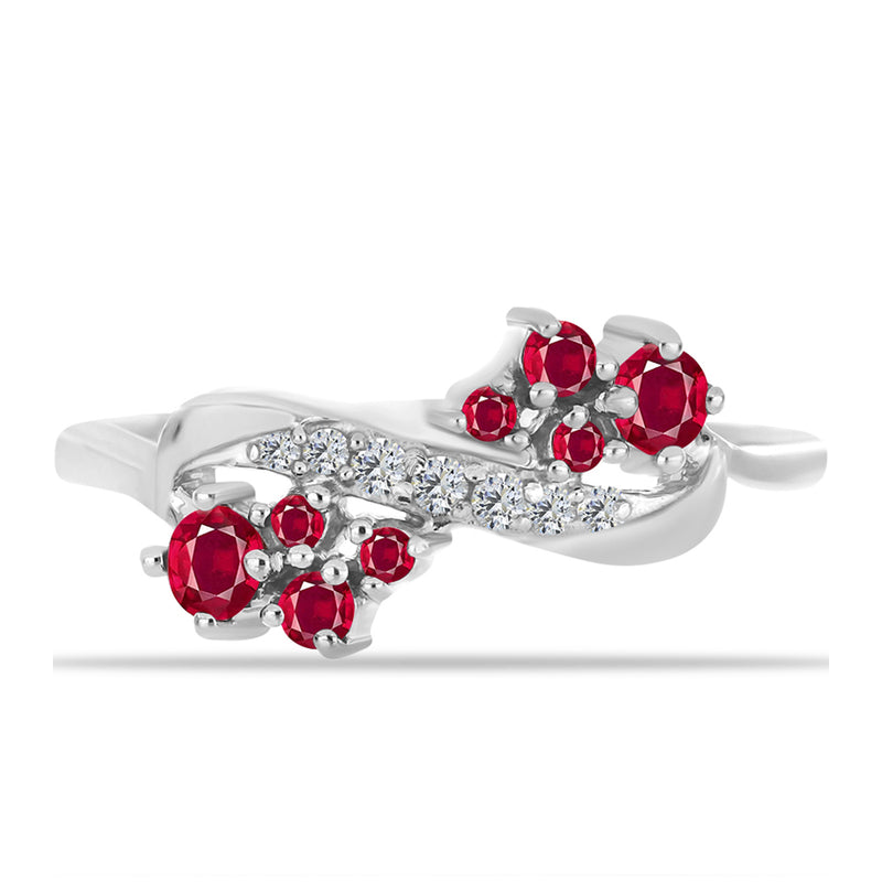 Stříbrný Prsten s Madagaskarským Rubínem a Bílým Topazem